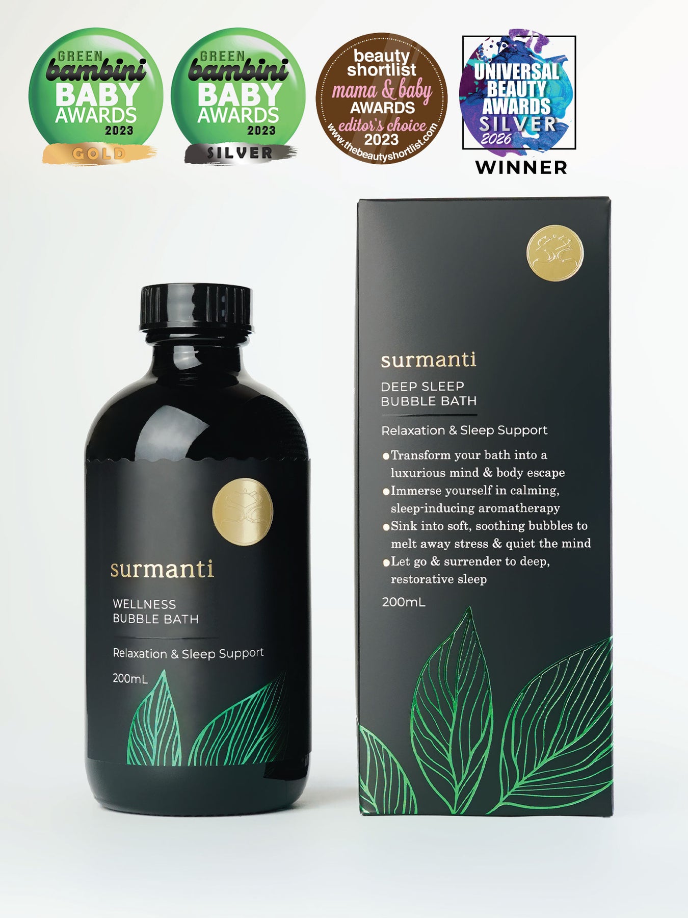 Surmanti's Sleep Support Bubble Bath is more than just luxurious foam. It's a powerful sensory ritual, infused with GABA and calming herbal extracts to help your body and mind unwind - naturally. Whether you're restless, overstimulated, or running on empty. this bath works to calm your nervous system and prepare you for deep, restorative sleep.