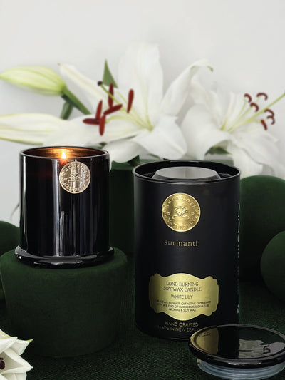 Surmanti's scented candles make for a thoughtful and elegant gift. Each candle is elegantly packaged in a sophisticated matte black tube, adorned with gold detailing and a signature Surmanti coin. Whether for an anniversary, the birthday of a loved one, or just to treat yourself, our candles are sure to impress. We also present luxurious boxed gift sets NZ to celebrate any special occasion.