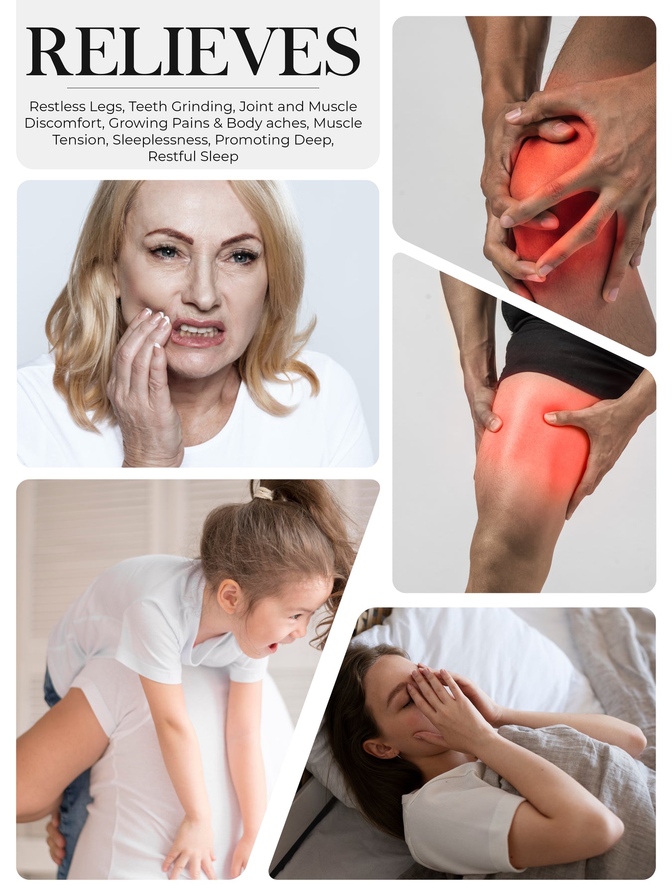 - Restless Legs: Calms restless leg sensations with powerful, lasting effect.